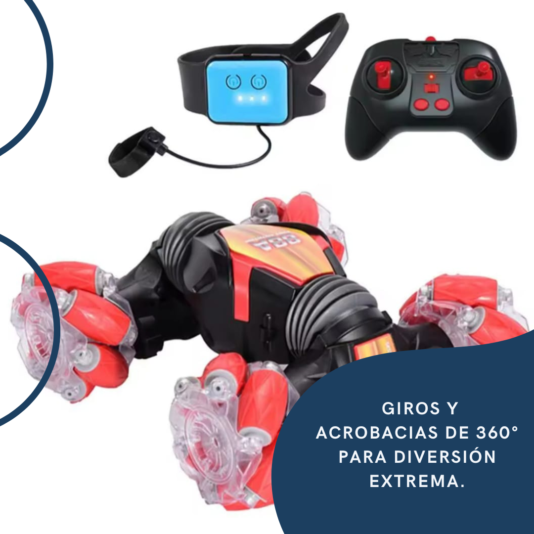 Este coche de acrobacias redefine la diversión. Con su control por gestos y giros de 360°, brinda una experiencia emocionante e inolvidable. Perfecto para carreras en cualquier terreno y diseñado para resistir los desafíos más extremos. ¡La diversión está asegurada!